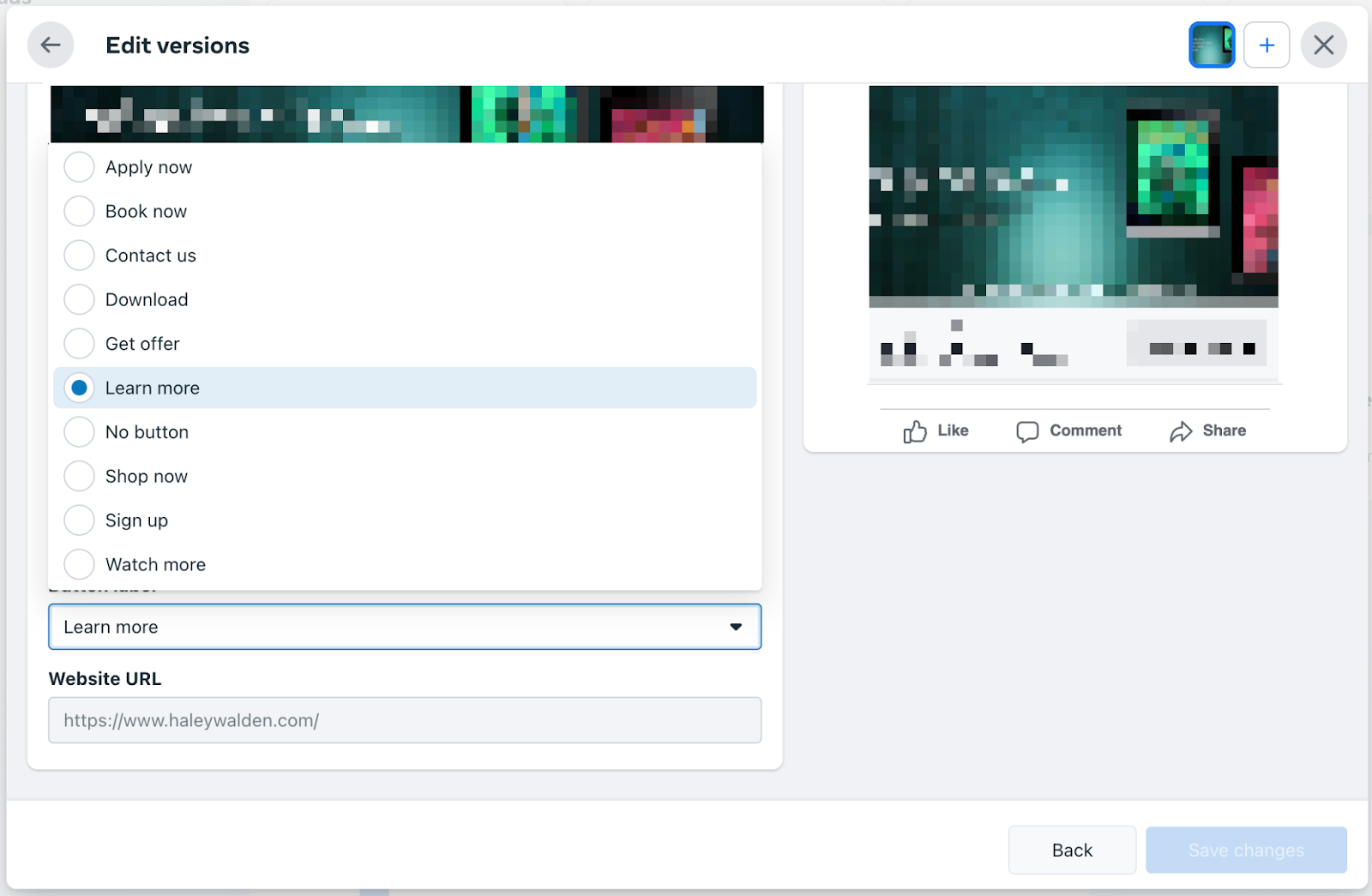 When you create a Facebook Ad, you can choose from the following CTA buttons: