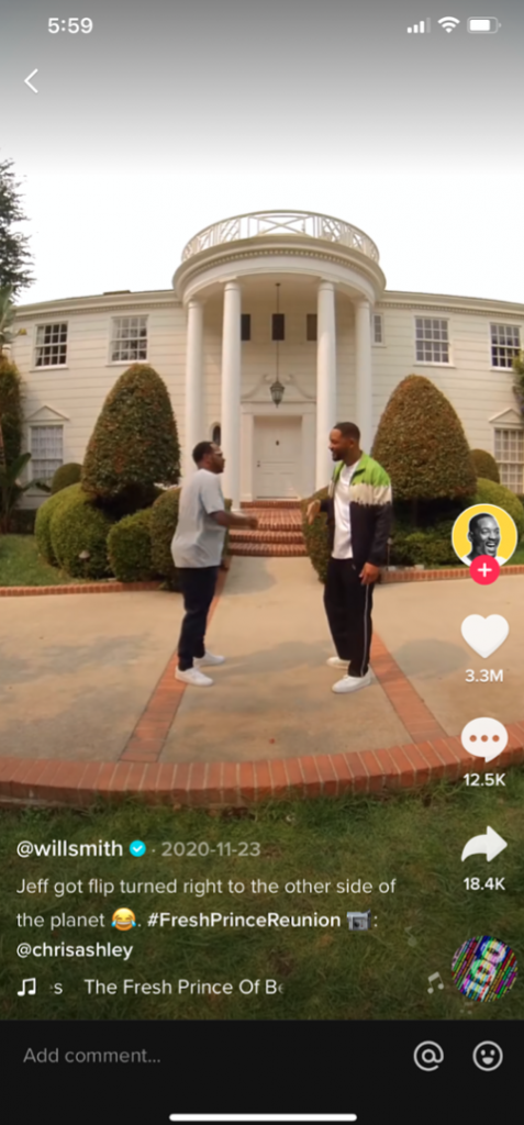 TikTok Tip: Will Smith has been a household name for decades, and he doesn’t shy away from his entertainment legacy. If you’re working with a well-known brand with a little bit of history behind it, consider a TikTok strategy that plays on fan nostalgia and leans into the legacy it has built over the years.