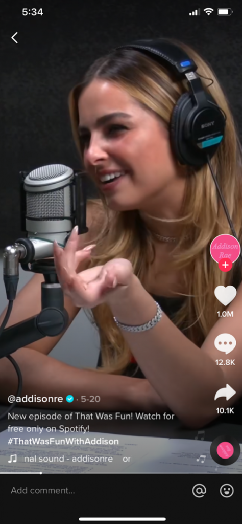TikTok Tip: Addison often duets with other accounts and features friends and other influencers, such as Dixie D’Amelio, in her videos. Consider how your client’s brand might be able to play up a sense of camaraderie with “sister†brands or even happy customers on TikTok.