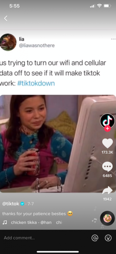 Primarily, the app’s brand account posts sponsored events, fun content featuring TikTok stars and other celebrities, and drives followers to live TikTok events. When the app experiences technical difficulties, its profile will feature humorous content that addresses the problem.
