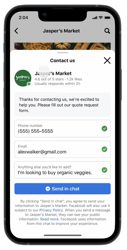 And finally, businesses using the new Facebook Page experience can add a lead generation form to their website, connected to the CTA button on their Page. This update makes it easier for Page visitors to send their contact information through a private Messenger chat, facilitating conversations and personalised responses.