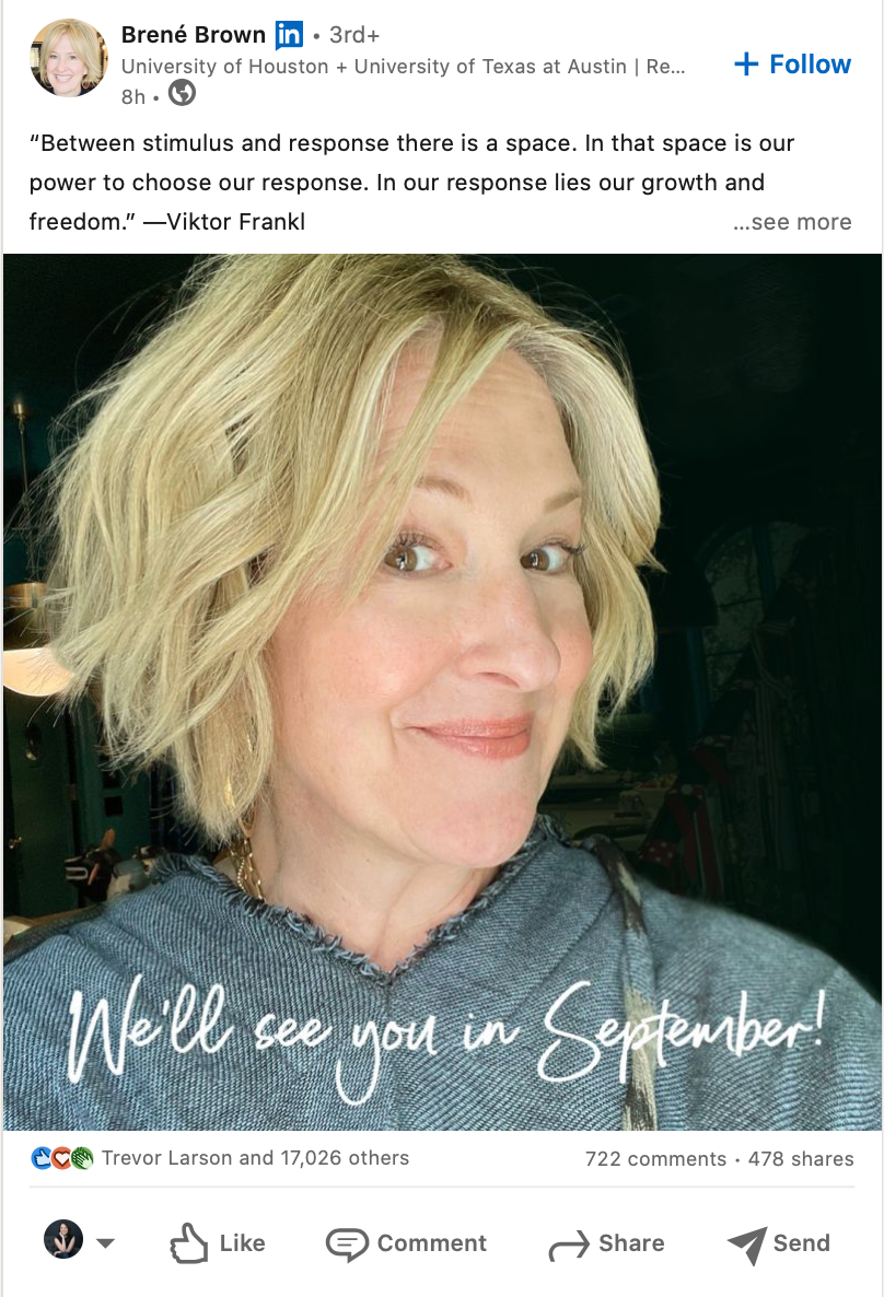 You’ll also want to engage privately with other users, too. You can reach out to share a personal story about someone’s post that resonated with you, or to thank them for advice or a referral. Relationship building is the name of the game.