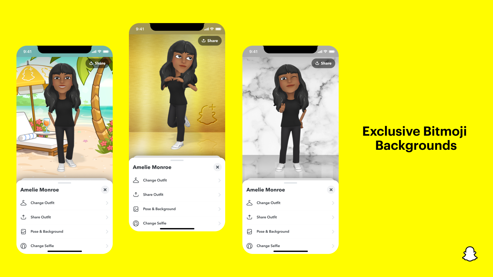- New Bitmoji backgrounds: More unique settings to present Bitmojis with more flair. New backgrounds include ‘gleaming gold’ and ‘beach paradise’