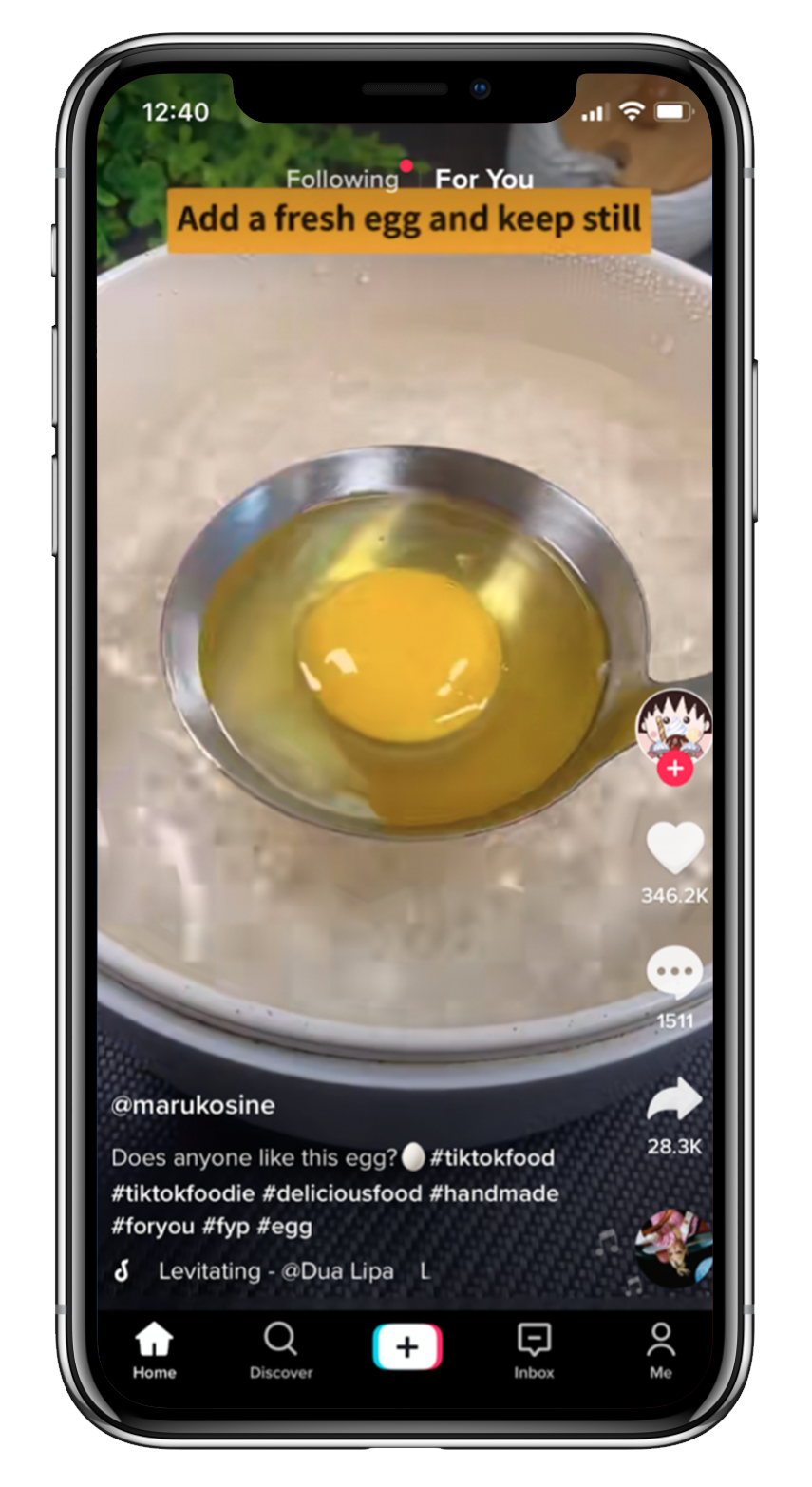 An example is the cooking channel @marukosine which has 720K followers. Their recipe videos are well-edited in short 1 second clips, keeping viewers engaged until the end. This is a great sign to the algorithm that the video is high-quality, helping it feature on more FYPs, and further increasing video and followers.